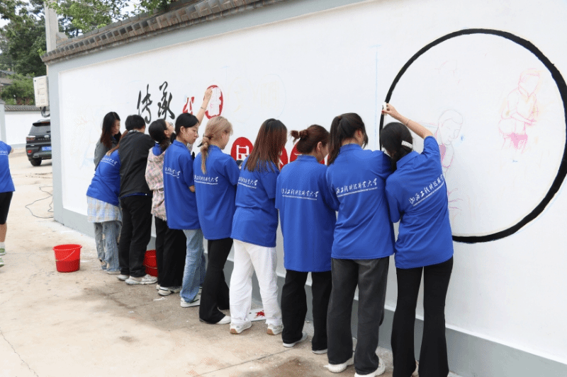 我院实践团立足专业特色,优先聚焦乡村文化可视化建设需求,围绕“乡村振兴成果”“平定民俗特色”两大核心主题开展墙绘创作。师生团队提前调研当地非遗元素、农耕文化符号,精心设计兼具美学感与在地性的彩绘方案。执行过程中,成员们分工协作,从起形勾勒到色彩填充,将原本单调的村落墙面转化为“可看、可感、可传播”的文化载体,既切实美化了村容村貌,更让乡土文化以鲜活形式融入村民日常,引得不少村民驻足观看、交流讨论。