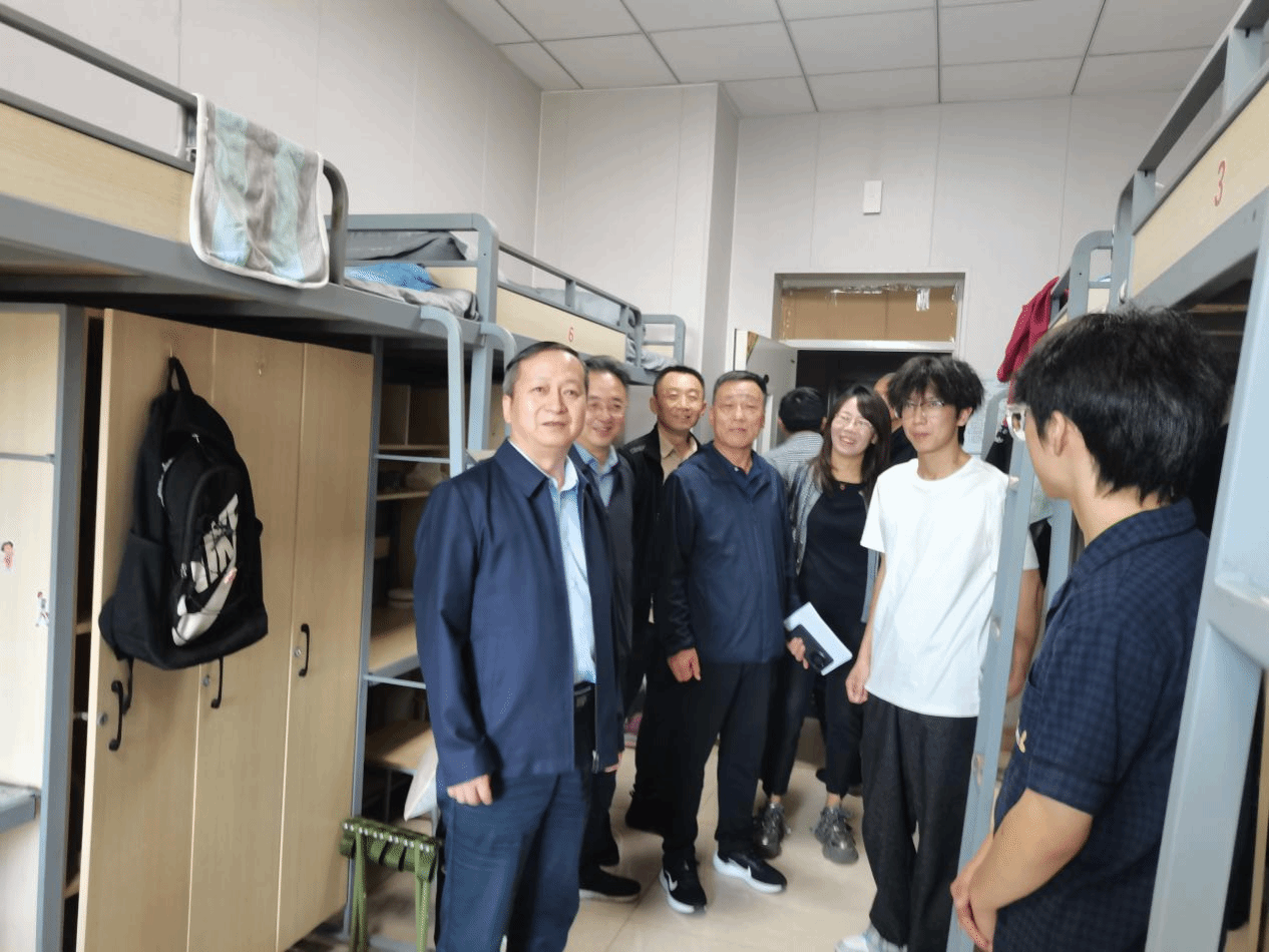 秋风送爽,丹桂飘香。为深入了解2025级新生入学后的住宿生活情况,确保同学们尽快适应大学生活,9月19日下午,校党委副书记梁晓军、艺术设计学院党委副书记(主持工作)余建忠、学院副院长(主持工作)艾菁菁、教学副院长李刚及新生辅导员一行走访了西区1号、3号学生公寓,亲切看望慰问新生,详细了解同学们的生活适应情况,倾听入学感受,勉励大家尽快转变角色,勤奋学习,珍惜大学时光。校领导叮嘱相关部门做好入学教育与服务保障,帮助新生顺利适应。此次走访让新生感受到学校的关怀与温暖,拉近了师生距离。让刚刚踏入校园的新工科大学生深切感受到了家一般的温暖。